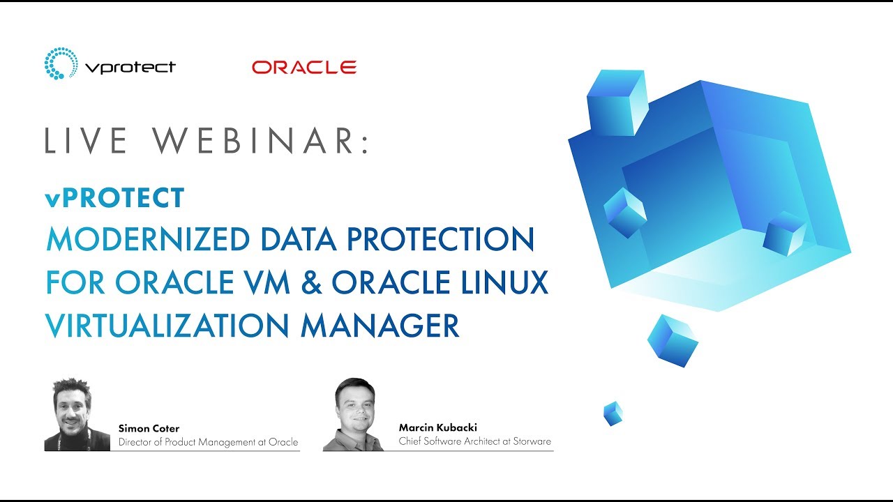 During the webinar you will learn how to easily protect both Oracle virtualization platforms with an agent-less backup solution. It is worth to add that vProtect you can backup not only VMs, but also applications and hypervisor configuration.